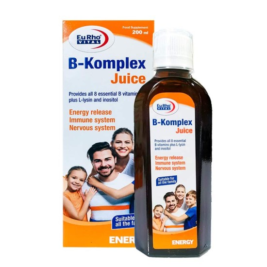 شربت ب کمپلکس جویس یوروویتال Eurhovital B-Komplex Juice محصول جدیدی از محصولات یوروویتال است که حاوی ویتامین های گروه ب یا ب کمپلکس است. ب کمپلکس جویس یورو ویتال حاوی 8 ویتامین ضروری گروه ب به همراه ال لیزین و اینوزیتول است.