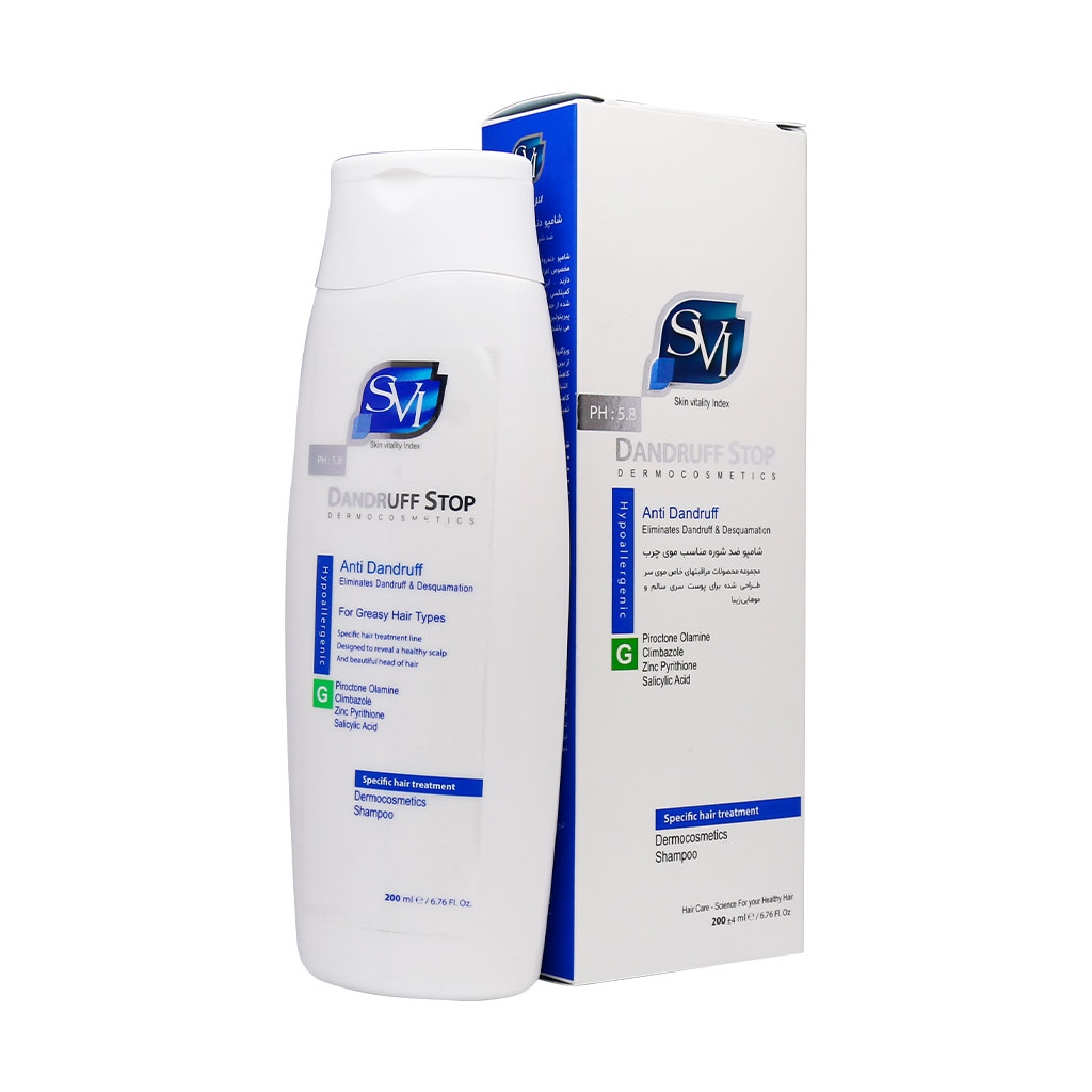 شامپو دندروف استاپ اس وی آی مناسب موهای شورهدار است و شوره و پوستریزی سر را به طور کامل رفع میکند. پیروکتون اولامین، زینک پریتیون و رزماری از مواد تشکیلدهنده این شامپو هستند که همه آنها به از بین بردن شوره سر کمک میکنند. شوره بر اثر نوعی قارچ به وجود میآید. زینک پریتیون دارای خواص ضدقارچی است و سلولهای مرده پوست را برطرف میکند. همچنین پیروکتون اولامین نیز دارای خواص ضدقارچی بوده و از تشکیل شورههای جدید جلوگیری کرده و پوست سر را تمیز و خارش را رفع مینماید.