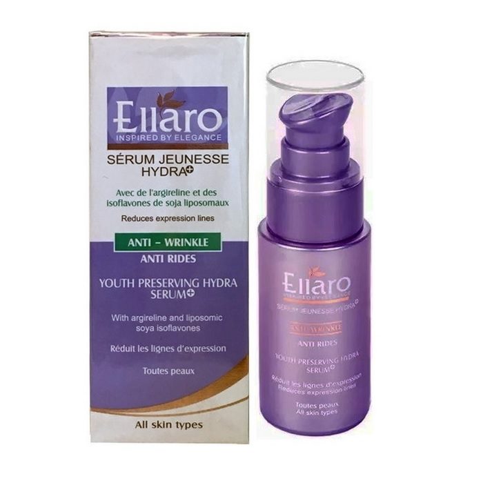 سرم ضد چروک الارو Ellaro Anti Wrinkle Serum یک محصول مناسب برای رفع چین و چروک پوست به همراه ترکیباتی برای آبرسانی و جوانسازی پوست است. سرم آبرسان و ضد چروک یوس هیدرا الارو یک محصول قدرتمند برای پیشگیری از بروز علائم پیری زودرس پوست و همچنین جلوگیری کننده از ایجاد چین و چروک پوست است. این سرم آبرسان و ضد چروک با بهره گیری از خواص شبه بوتاکس، باعث از بین رفتن چروک های عمیق روی صورت می باشد پیش از آن که نیازی به استفاده از سایر کرم ها و عمل های جراحی مورد نیاز باشد.